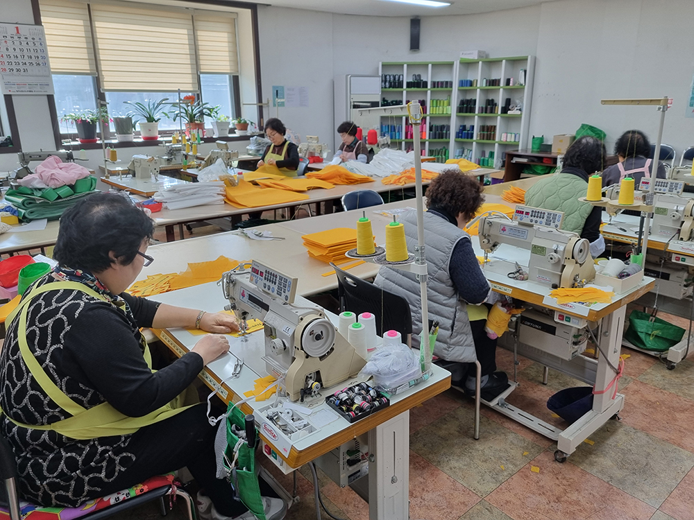 전문봉제기술을 가진 어르신들이 공업용 미싱을 이용하여 하청물품 생산 및 인견의류, 에코백, 작업조끼, 앞치마 등의 상품을 자체 제작하여 판매